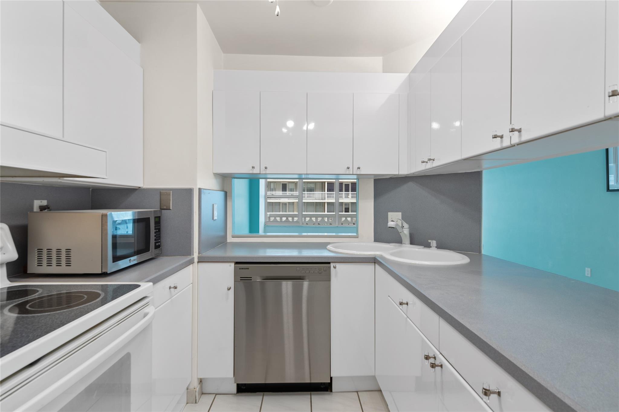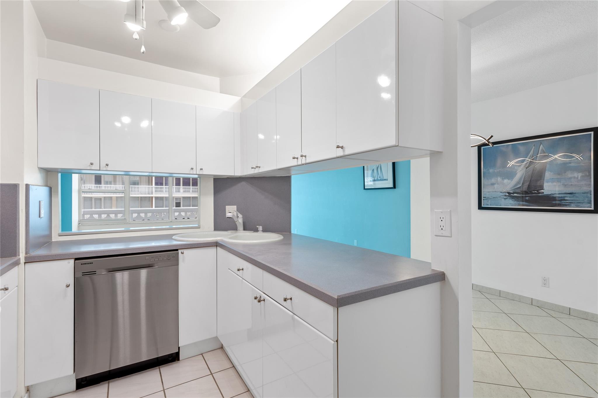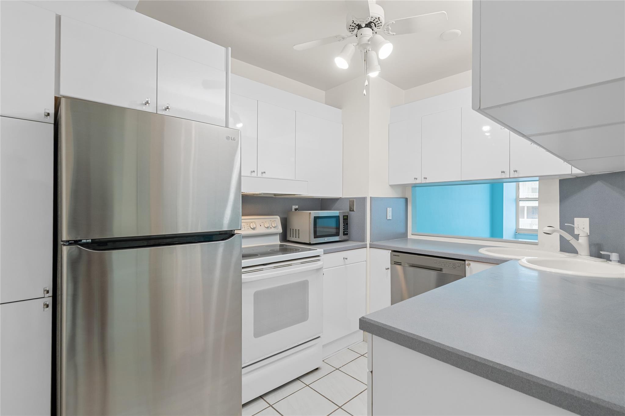 Don't miss this immaculate, move-in-ready condo with stunning ocean and intracoastal views. Large balcony perfect for enjoying the South Florida weather. High impact glass and doors throughout. Nice neutral tile floor in main living area with uniform laminate flooring in bedrooms. Maytag washer & dryer, newer A/C, water heater, and refrigerator, plus great closet space and a separate storage unit. Amenities include a remodeled clubhouse, private beach access, large fitness center, and a resort-style pool with ocean views, meeting room and more. Located in a well-maintained boutique building on Galt Ocean Mile, you're steps from shops, restaurants, and more. The building is undergoing upgrades, including a new roof, elevators, and lobby, ensuring years of enjoyment ahead.