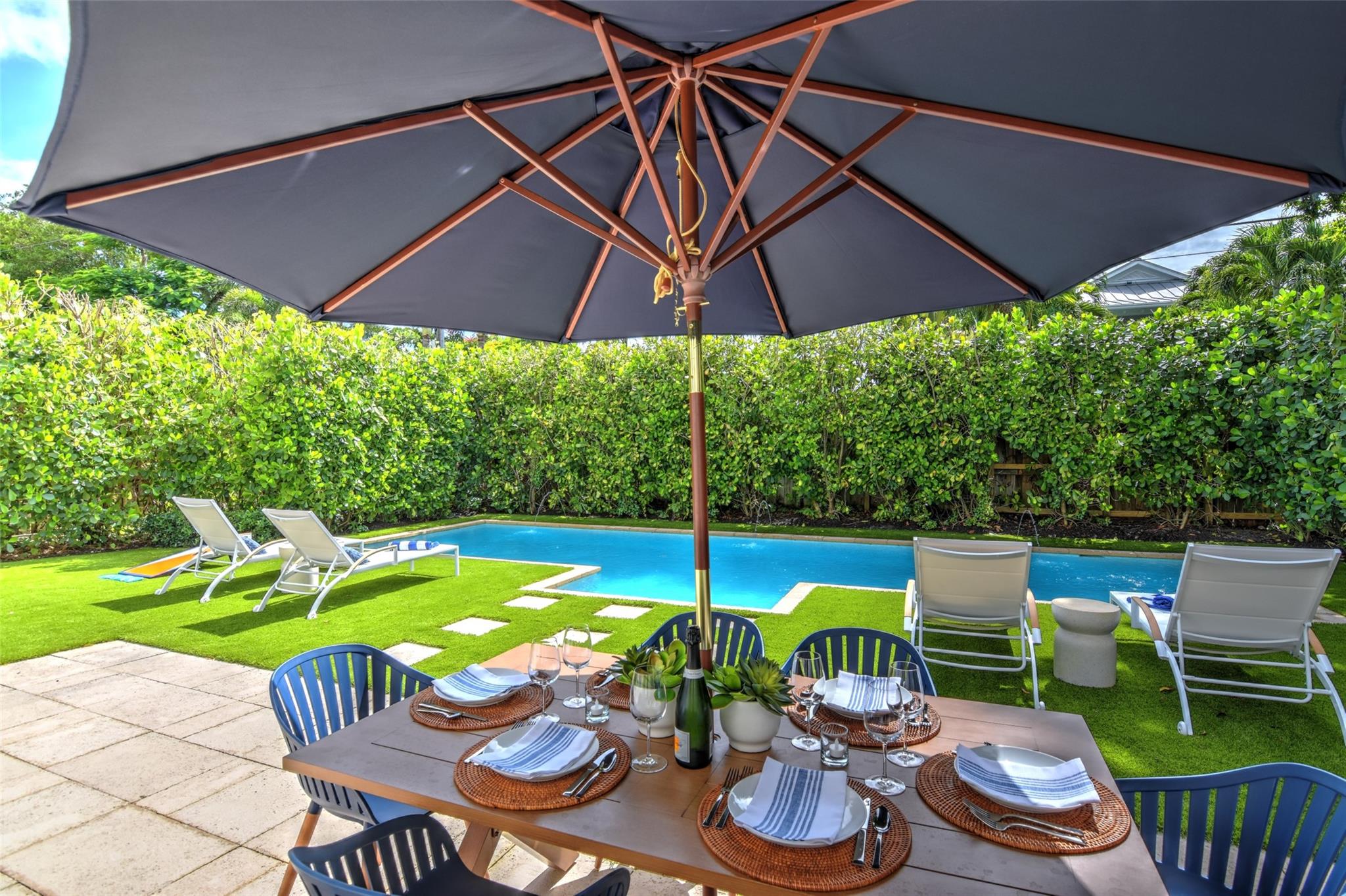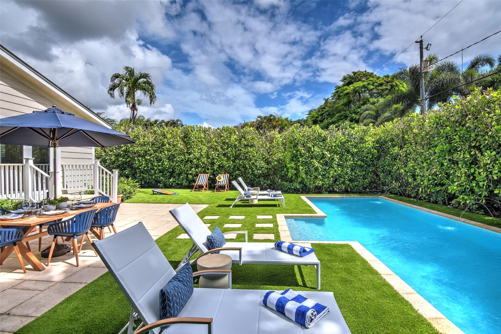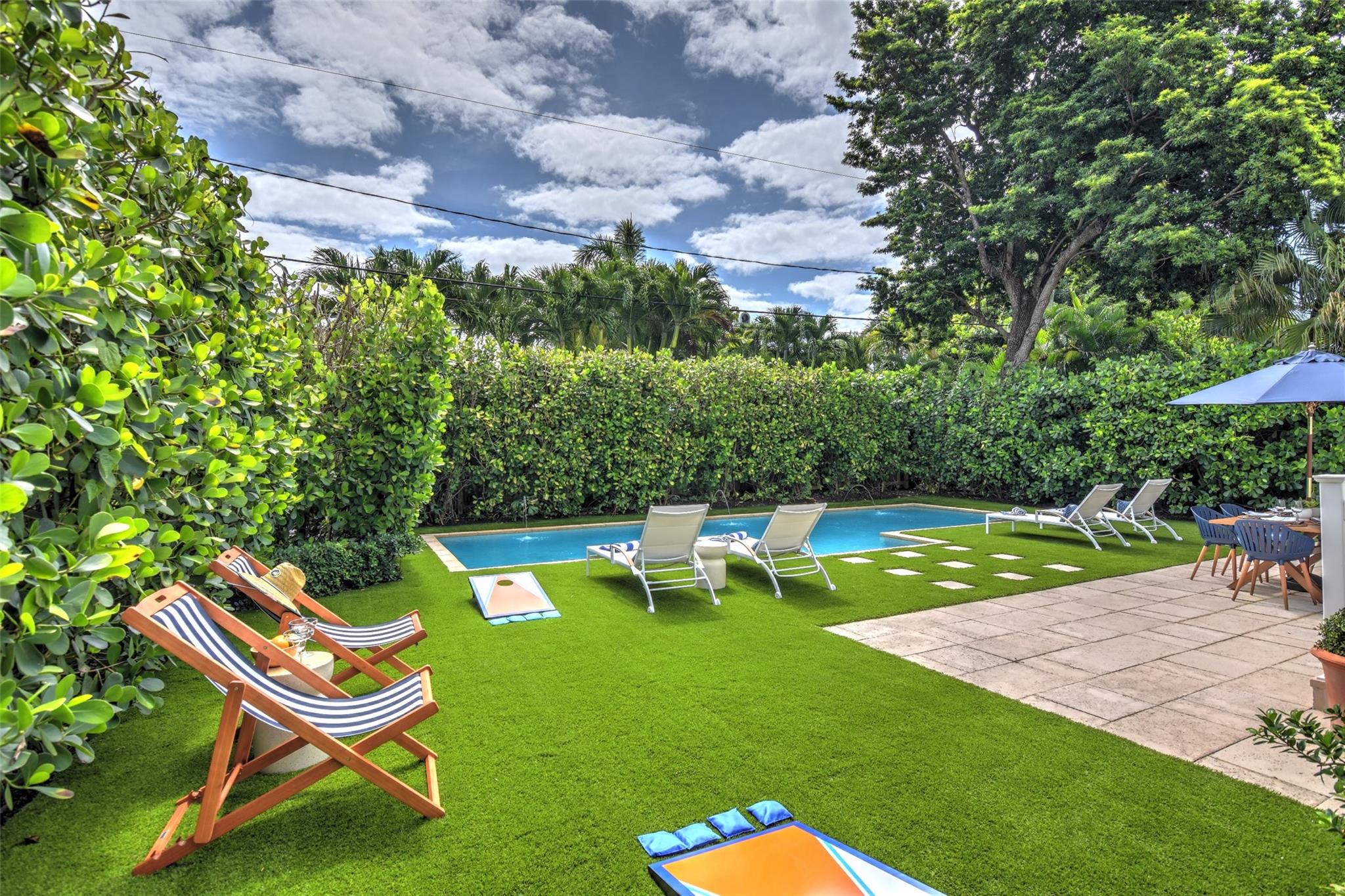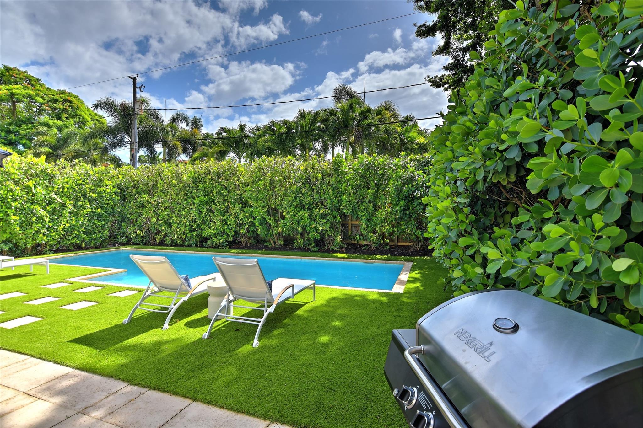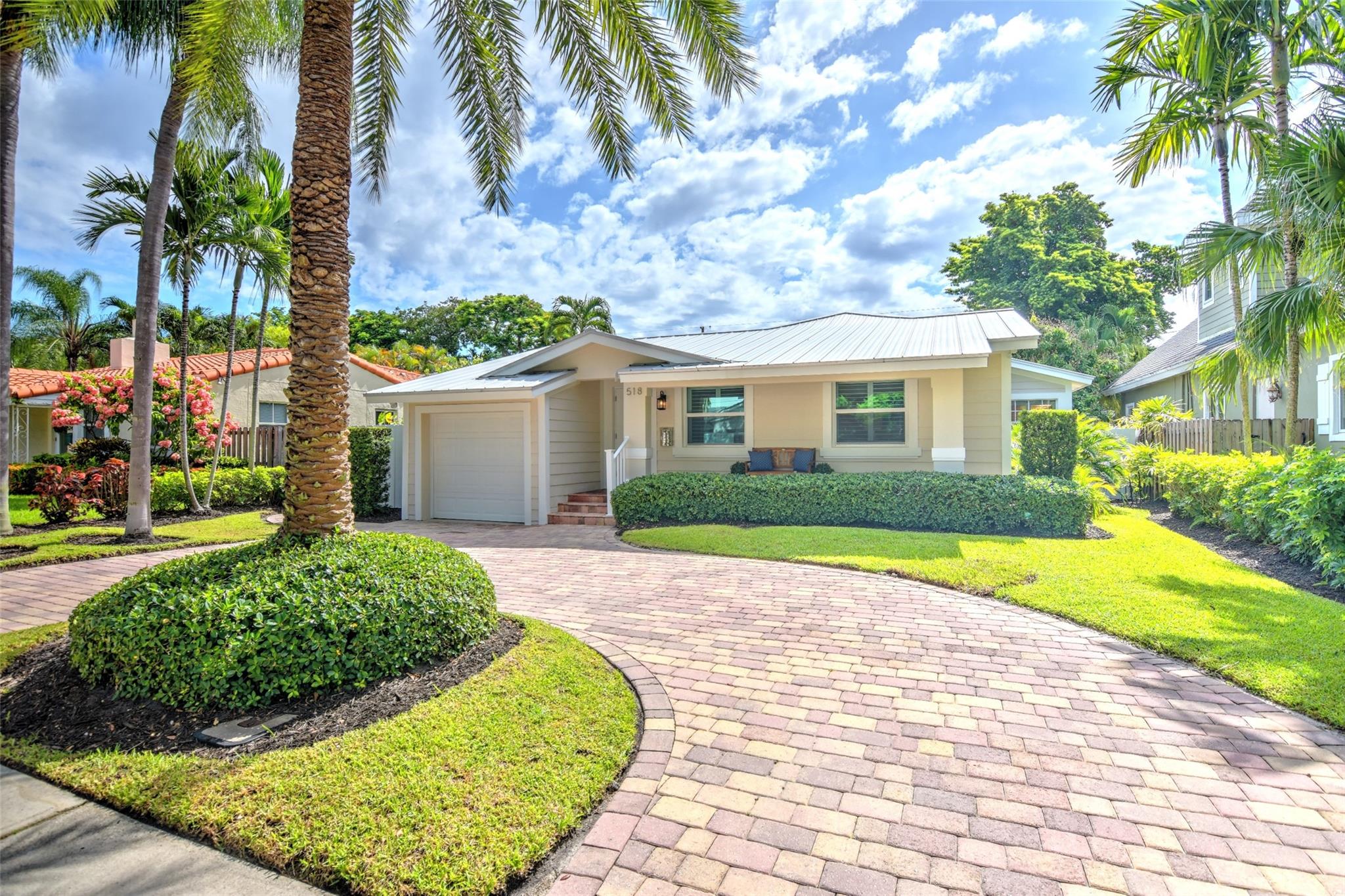 Stylish Victoria Park pool home on beautiful premium street in the heart of the neighborhood surrounded by single family only zoned houses. This 3 bedroom, 2.5 bath, 1 car garage home sits on a large 7,800 square foot lot and has a lush turf backyard, large patio, supreme privacy hedge and heated pool. There is a spacious family room and built-in office area as well. The primary bedroom has a large en suite bathroom, high volume ceiling and walk-in closet with custom cabinetry. Home has raised seam metal roof, custom stucco treatment, impact windows & doors, wood floors, one car garage, and a circular driveway to allow for plenty of parking. Great location, close the amenities of Holiday Park, Las Olas, downtown, and minutes to the beach.