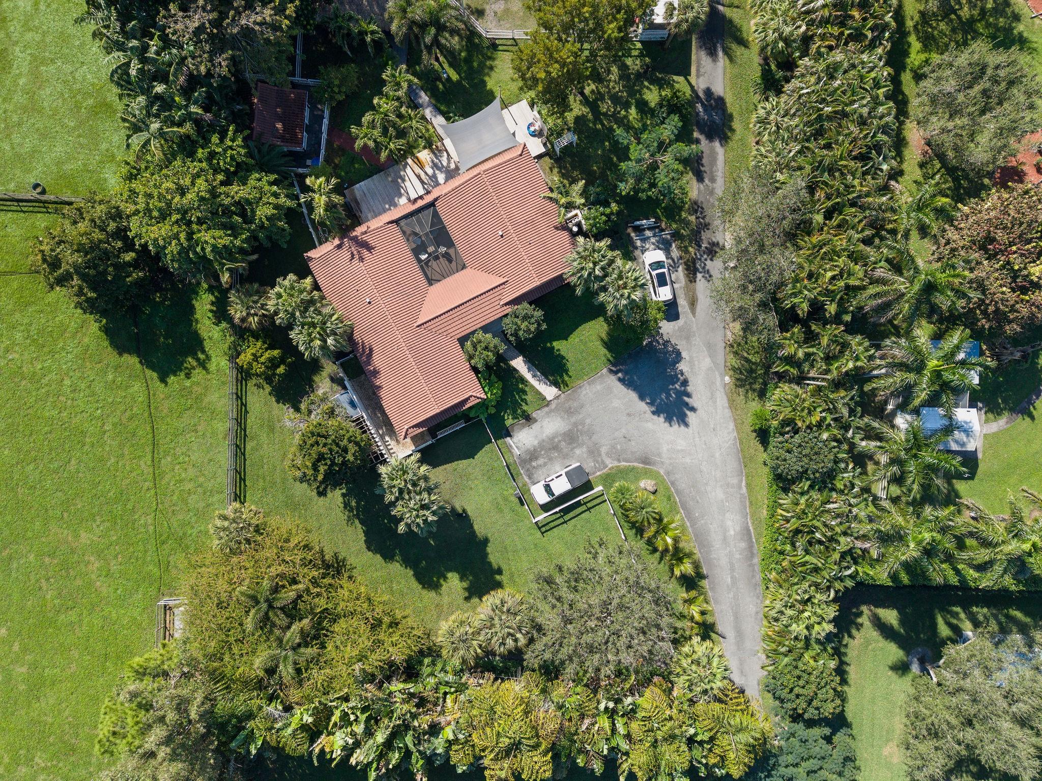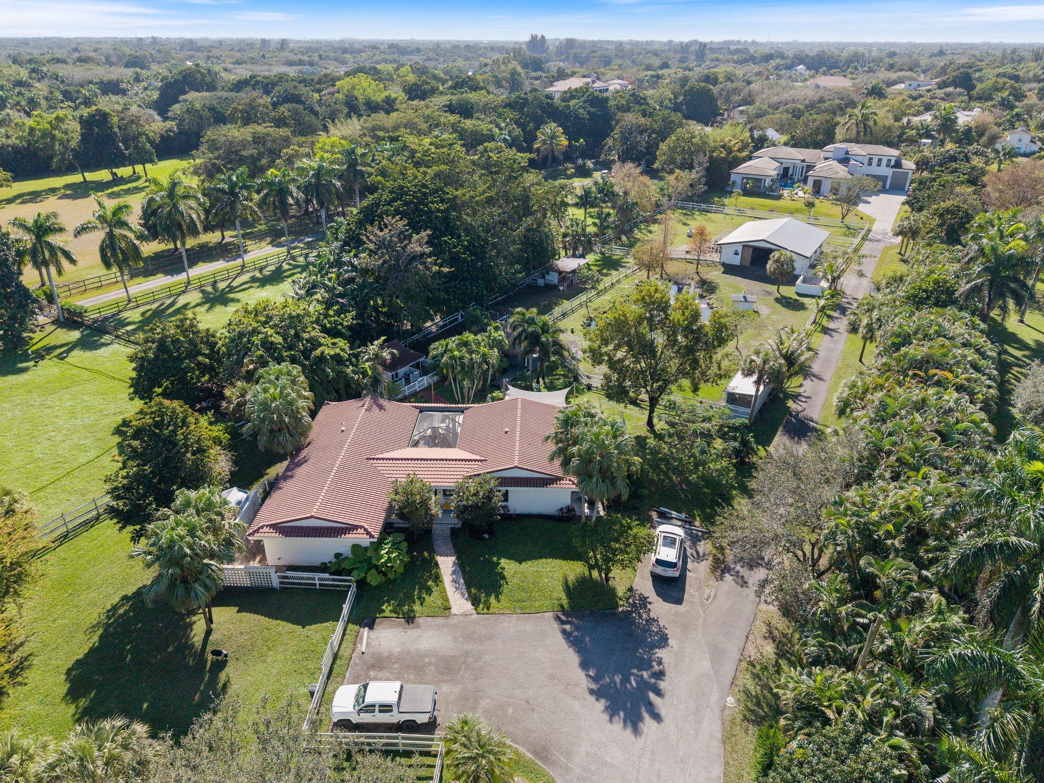 Improved Price! This country living oasis, 1 mile from grocers, restaurants, and 15 minutes from Ft Lauderdale was built in 2023, sits on 2.78 acres in the heart of Southwest Ranches, an equestrian community. It is an interior lot, off the road, private and quiet. The gated entry opens up to a 2/2 guest house, renovated in 2019, perfect for guests. The oversized rear deck overlooks the gazebo on the pond, horse pastures and tiki hut, great for casual entertaining. The courtyard style main home wraps around the modern saltwater pool and spa, with ample area for seating, lounging, and relaxing. There is a free-standing wine cooler. Custom cabinetry throughout. The home has 9 seats theater, oversized playroom, gym, 3 bedrooms, 6 bathrooms, and 2 offices that can convert to 2 more bedrooms.Welcome to country living, 1 mile from grocers, restaurants, shops, and 15 minutes from downtown Ft Lauderdale. This exquisite residence (built in 2023) sits on 2.78 acres in the heart of Southwest Ranches, an equestrian community. It is an interior lot, off the road, private, quiet and serene. The driveway has over 50 coconut and royal poinciana trees. The gated entry opens up to a 2/2 guest house (renovated in 2019), perfect for friends, family. The oversized rear deck overlooks the gazebo on the pond, horse pastures and tiki hut, great for casual entertaining, dining, expansive outdoor living. The courtyard style main home overlooks the horse pastures and wraps around the modern saltwater pool and spa, with ample area for seating, lounging, relaxing. The home has 12 ft ceilings in the primary bedroom, and 16 foot ceilings in the main living area, impact resistant doors and windows throughout, and 4 x 4 porcelain tile throughout the main living area and primary bedroom and bath. The modern chef's kitchen has top of the line Thermador appliances, a gas cook top, double oven, plenty of countertops with a large waterfall island, and a large pantry. There is a free standing wine cooler that holds an ample supply of wine, champagne. Custom cabinetry throughout. The homehas 3 bedrooms, (with 2 offices that can easily add 2 more bedrooms), 6 bathrooms, a full bar with draft beer, a wine center, dining for 12, a 16 foot tall modern gas fireplace, while upstairs is a 9 seat multi level theatre, and a large game room that can hold a pool table, ping pong table, foose ball table, Pac-man table, and ample seating. The master bathroom is a spa like experience. 2 Toto toilets with remote control, 2 showers rainfall or wand, tankless water heaters, and a slipper tub that changes color as it bubbles and massages. The primary bedroom has its own fridge and coffee station. The private casita has 2 offices, a bathroom, and 13x16 gym. There is a gas outdoor kitchen, prep area. There is a 1000-gallon gas tank buried on the property to power the kitchens, fireplace and the water heaters. The house has a cement pad built for a generator pre-wired when ready. The 3-car garage has a Tesla charging station, the third garage is built for an RV or a lift to hold a fourth vehicle. The house comes wired with Sonos sound in all social areas and a 6-camera security system. Fruit trees abound, as well as royal poinciana, palms and oaks. 2023 six stall pole barn, 12 x 12 stalls.
